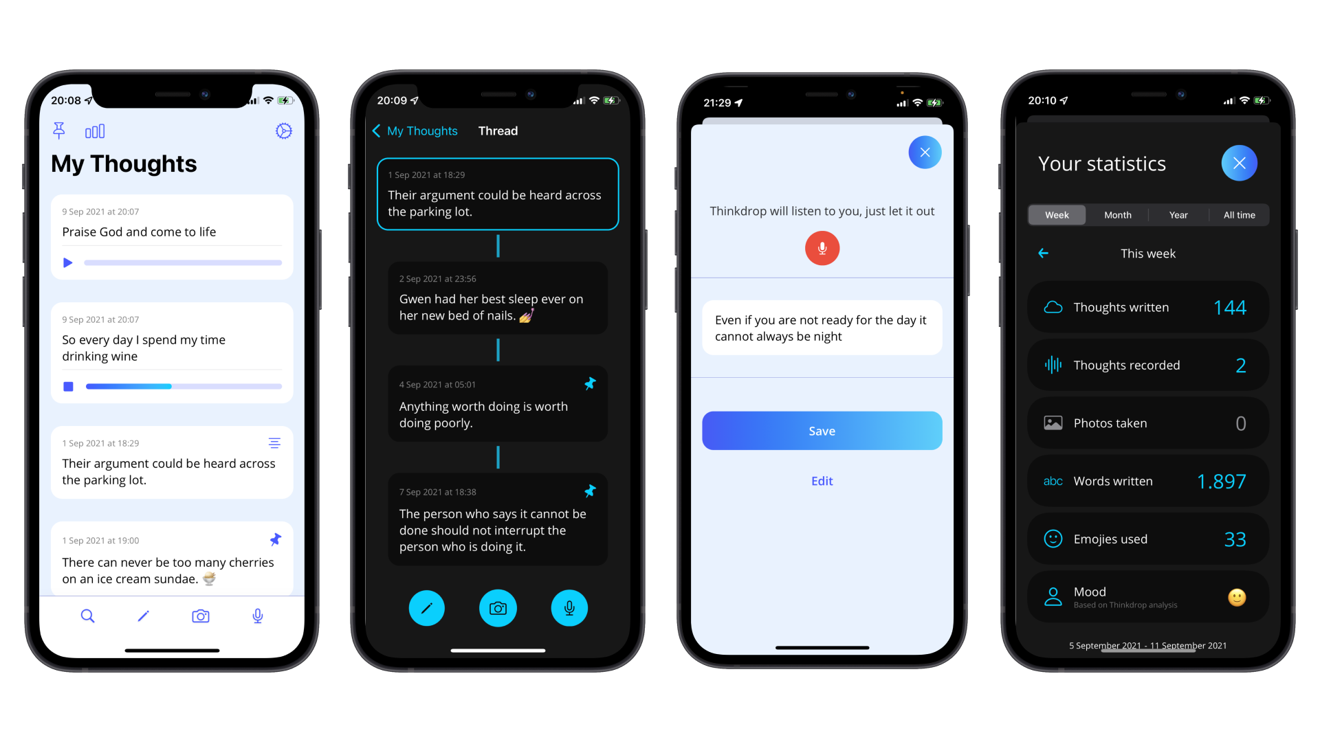 iPadOS, thoughts pinning, automatic deletion, search, statistics, Thinkdrop premium, sentiment analysis, tweet button, location snapping, automatic-tagging and even more to come